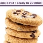 Soft, chewy, dense and buttery Almond Flour Chocolate Chip Cookies that can be mixed up, baked, and ready to eat in under 25 minutes!