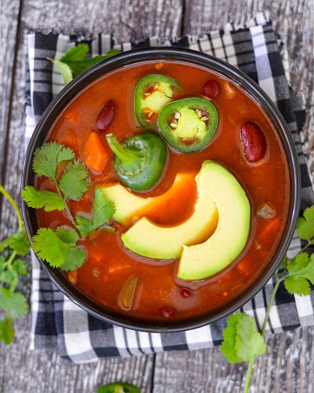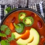 This easy soup is exceptionally good, topped with some thick slices of buttery avocado and fresh cilantro and served with biscuits or bread for dipping. Sweet potato biscuits, cornbread, healthy oil-free biscuits, yeast-free spelt bread, jalapeno corn scones, or vegan garlic bread all make great accompaniments!