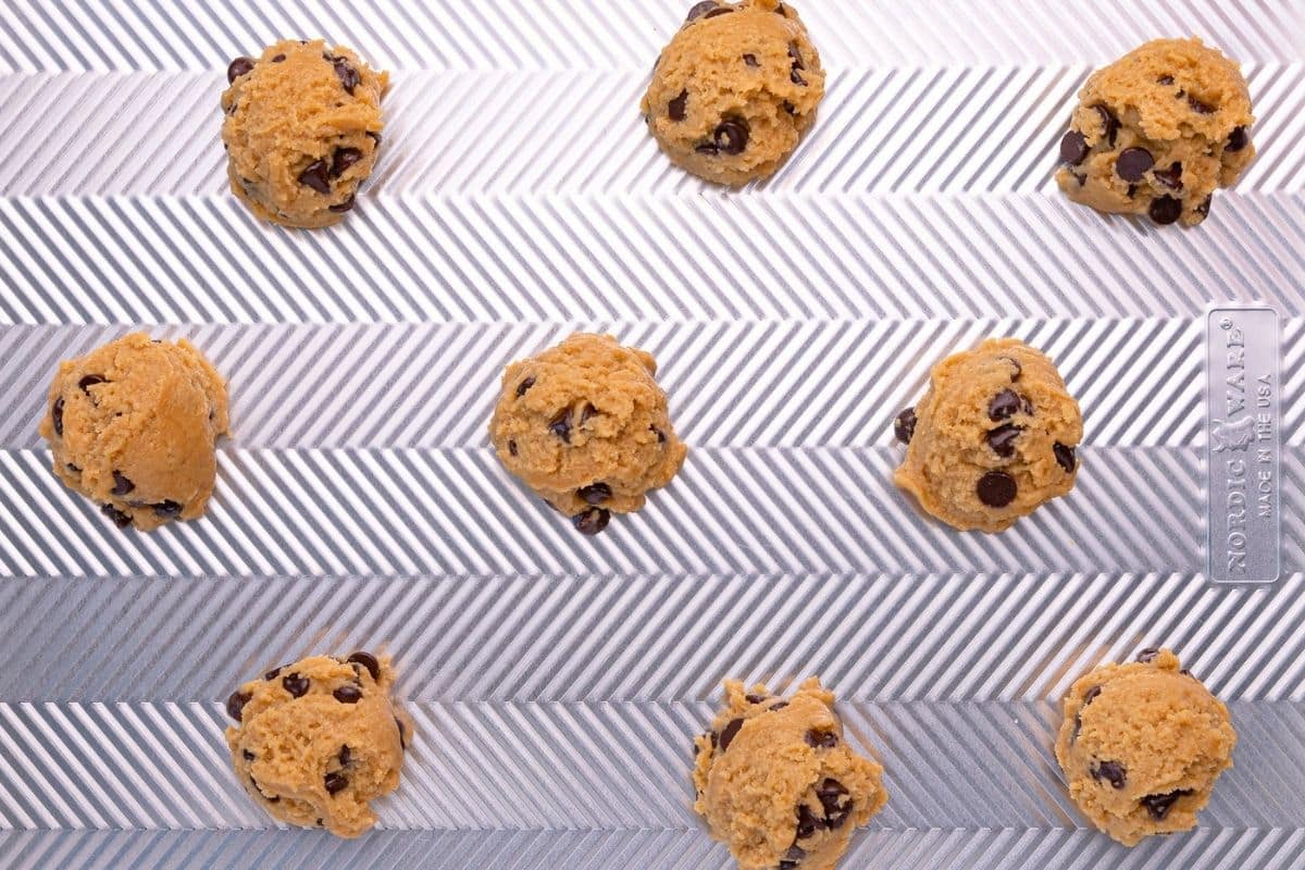 - Scoop out 3 tablespoons of dough per cookie, and place on a cookie sheet, leaving plenty of room around each one.
