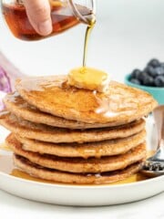 If you have leftover pancakes, you can wrap them well and keep them in the fridge for a couple of days or freeze them for up to 3 months. Reheat straight from the freezer.