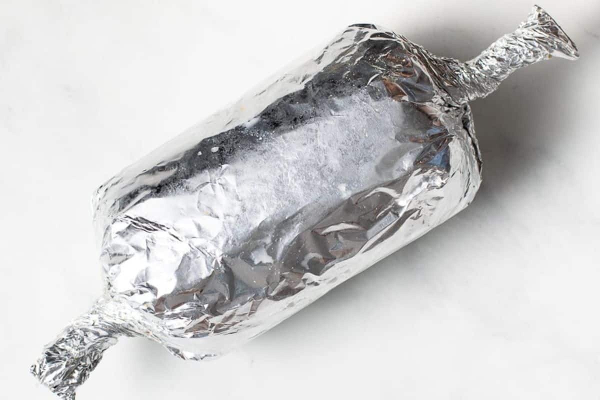 - Get a long piece of foil (around 20 inches long) and place the roast right at the end of it, long side of the roast along the shortest side of the foil. Roll it up in the foil. Keep rolling it until you reach the end, so that the roast is surrounded by a few layers of foil. Then twist each end tightly shut so it looks like a Christmas cracker.