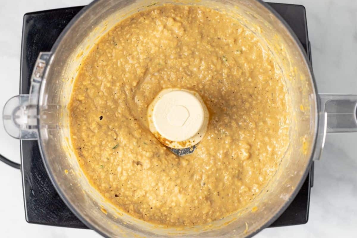 - To a food processor, add the beans, artichoke hearts, garlic, nutritional yeast, soy sauce, black pepper, sage, rosemary, thyme, Better Than Bouillon No Chicken Base, and water. Process until well combined and smooth-ish. If you don't have a food processor, blend in a blender or with an immersion blender.